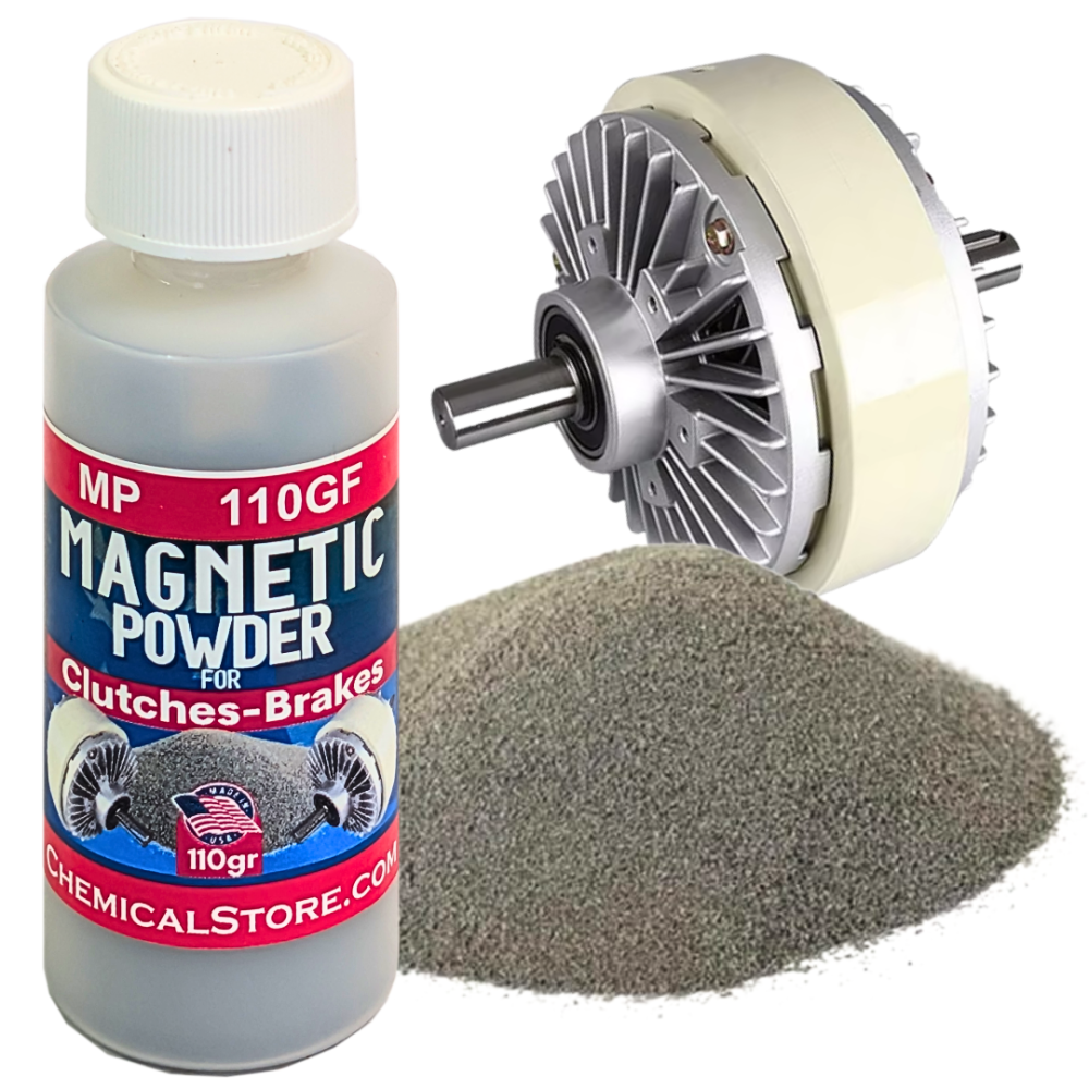 Magnetic Powder, Fine, 110 g (MP110GF) is a pre-measured quantity of high purity, fine magnetic iron powder with free-flowing particles, designed for use in magnetic clutches and magnetic powder brakes. This material functions as the active medium in electromagnetic torque transmission systems, where the applied magnetic field controls torque performance.